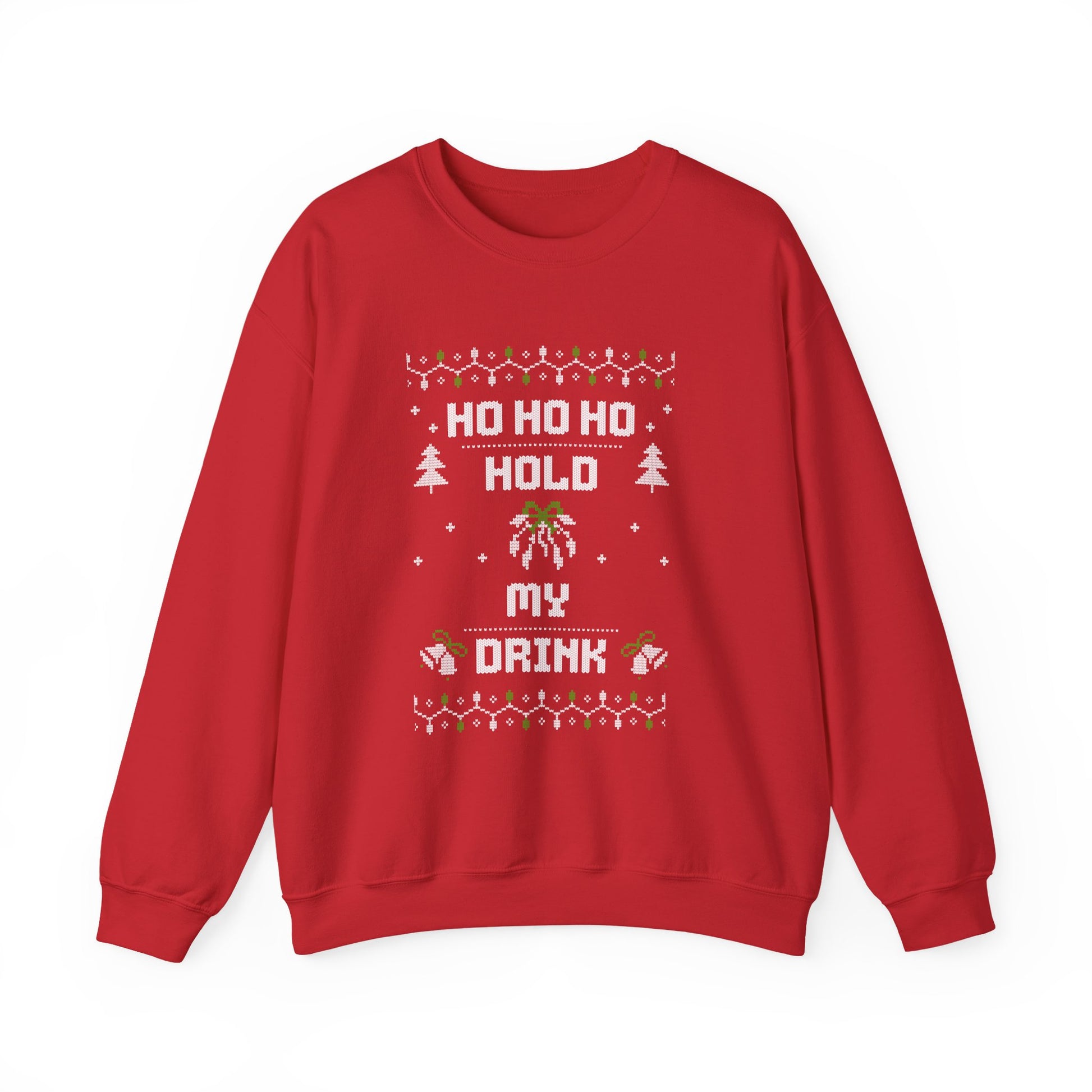 Holiday Sweatshirt — "Ho Ho Ho Hold My Drink" Ugly Christmas Sweater Style